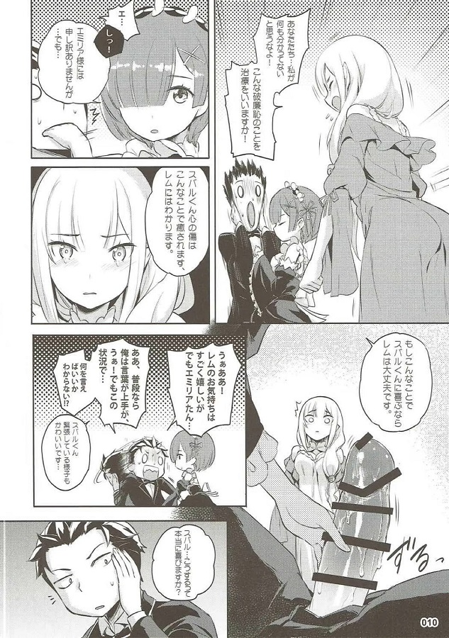 エミリア、緊張でふにゃふにゃのスバルのチンポを元気に...